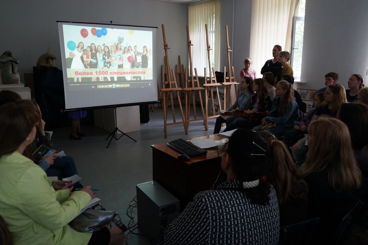 24 января 2019 г. во Дворце детского и юношеского творчества г. Донецка прошла встреча с преподавателями Донецкого художественного колледжа Зобниной О.В. и Петрикиной С.В. Встречу посетило более 80 человек: педагоги и обучающиеся старших классов изостудий учреждений дополнительного образования, общеобразовательных школ г. Донецка. В ходе встречи преподаватели Колледжа рассказали о значении профессиональных приемов изобразительной деятельности в работе с учениками, подробно осветили вопрос вступительной кампании 2019 года, ответили на вопросы зала.